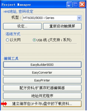 a、在Project Manager窗口中,點擊“建立儲存在CF卡與U盤中的下載資料”按鈕;